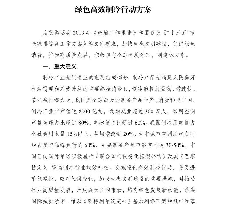 关于印发《绿色高效制冷行动方案》的通知